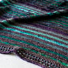 This shawl alternates 4 rows of stockinette in the contrast colours with garter ridges in the main colour. In Section 1, one garter ridge separates the colours; in Section 2, two ridges separate them; and in Section 3, three ridges. Finally, we edge the shawl with a delicate section of eyelet lace.