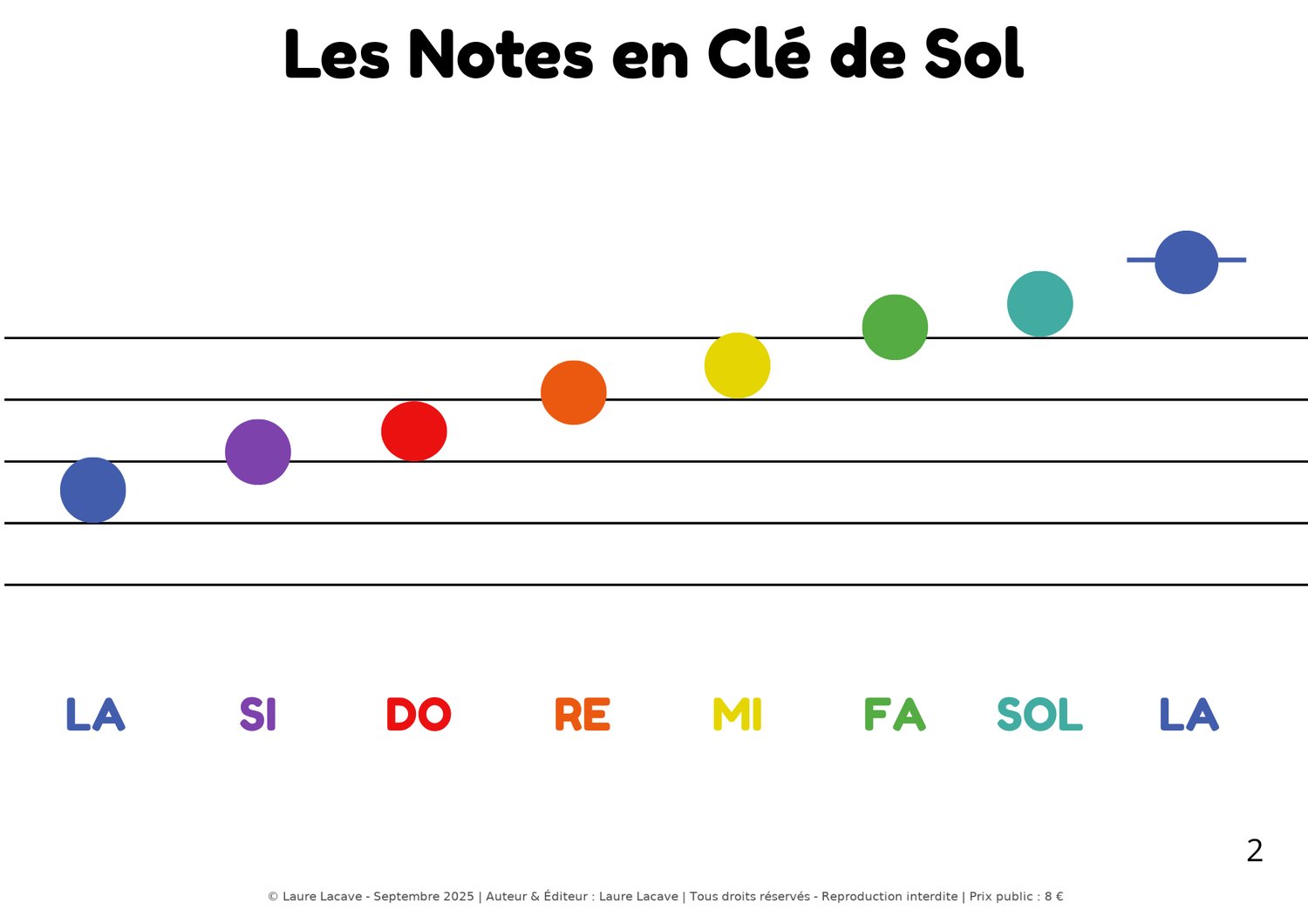Clé de SOL – Notes en couleur + noms des notes (A4)