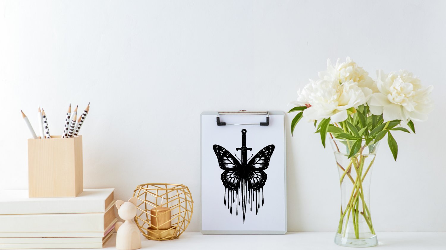 Delicate meets edgy in this striking pierced butterfly line art design. Clean, minimalist lines contrast with bold symbolism—representing transformation, strength, and resilience through adversity. The piercing element combined with graceful wings creates a powerful visual balance, perfect for modern, edgy, and meaningful designs.