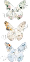 Floral and butterfly keyring designs in Blue, Green and Neutral to fit the blanks from Woodform Crafts - Product - WC1950.