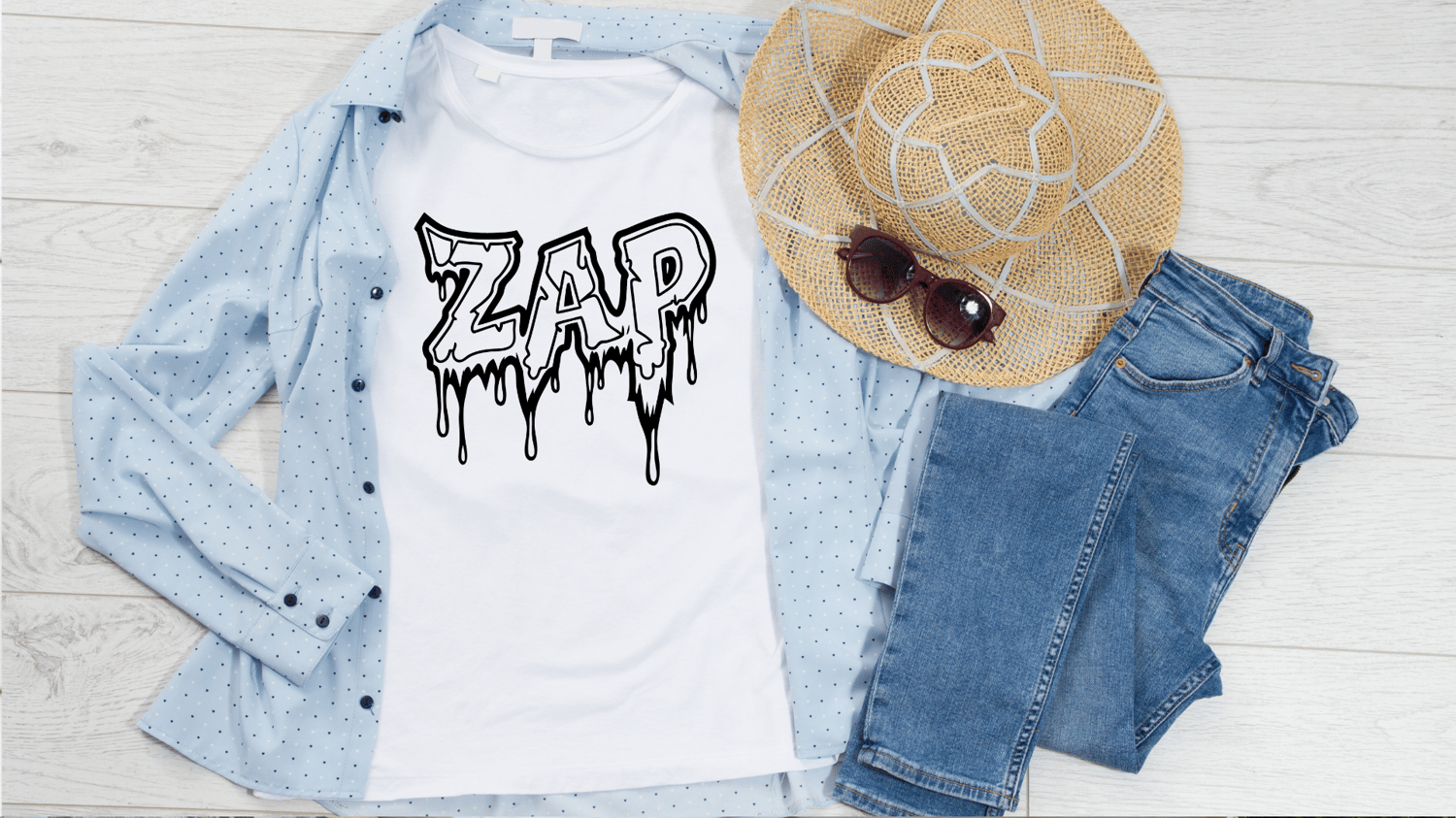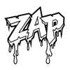 - Dynamic “ZAP” lettering enhanced by subtle lightning or drip-style accents