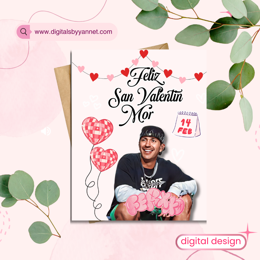Mor printable card / Ferxxo png card design / Feid Valentine's Day Spanish Card