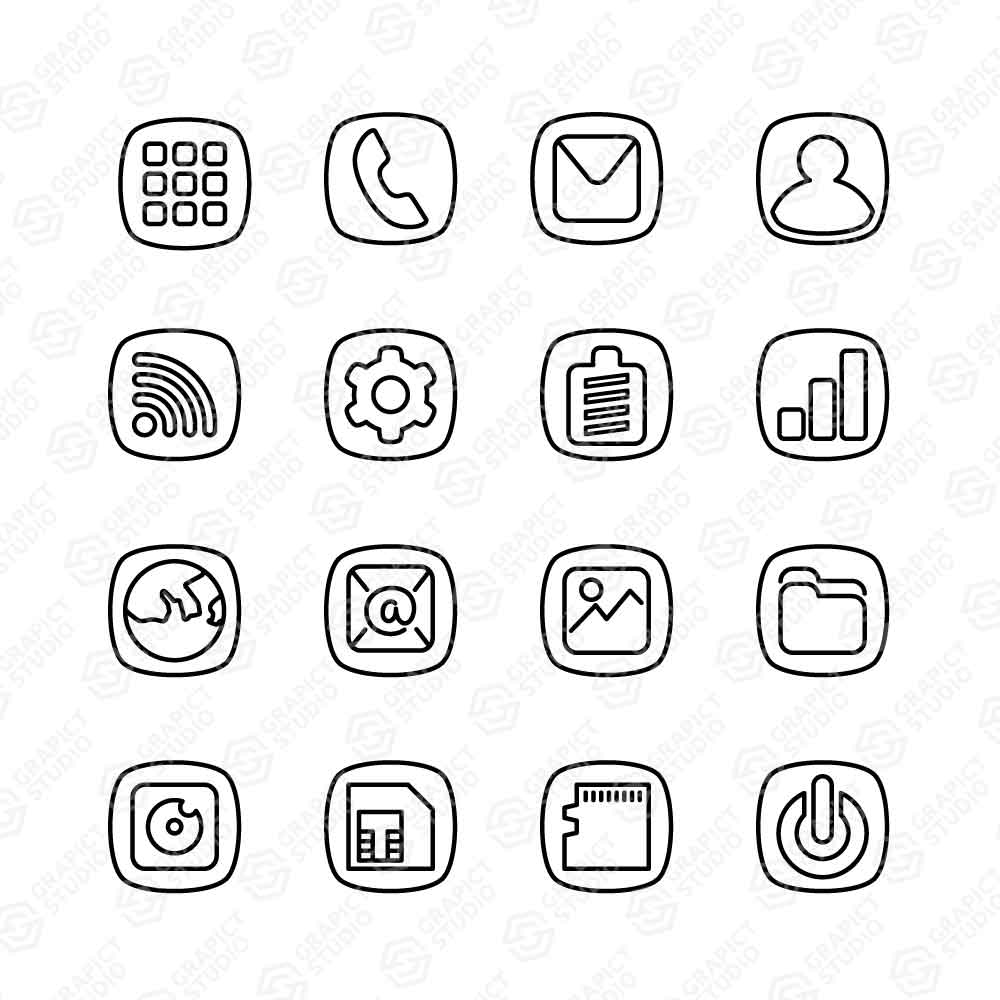 Common smartphone icons, design element suitable for websites or app. Creative vector illustration, outlined style icon.
