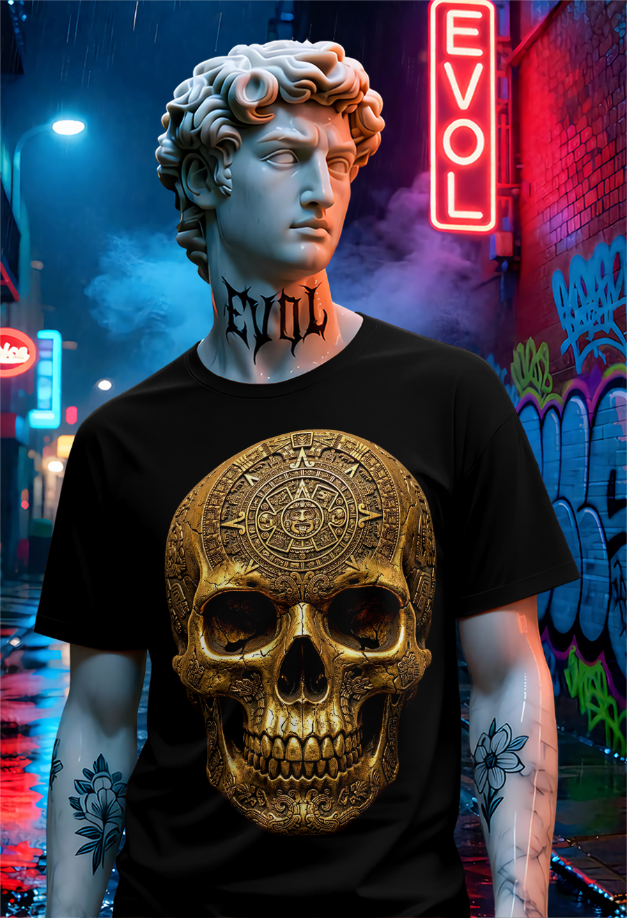 Gold Aztek Skull DTF/DTG Halftone Transparent PNG 360Dpi 35Lpi