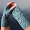 The mitts are worked in twisted rib and cable pattern, making them stretchy and ensuring a snug fit for most hands. The cable pattern on the cuffs and top of the hand is charted and written out. Separate instructions are given for the right hand, left hand, and thumbs.