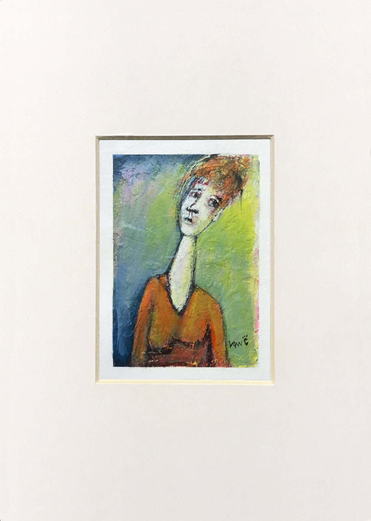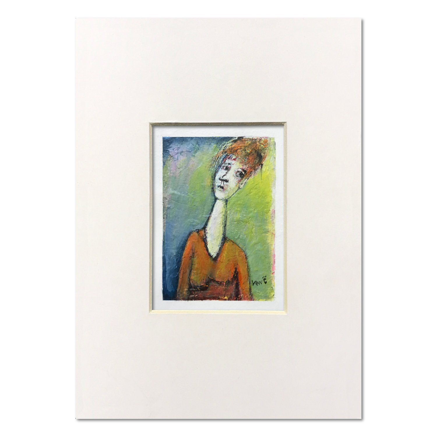 This painting is part of a 5x7 inch series of people portraits hand-painted by Ken Law. It has approximately a half-inch white border for easy framing.