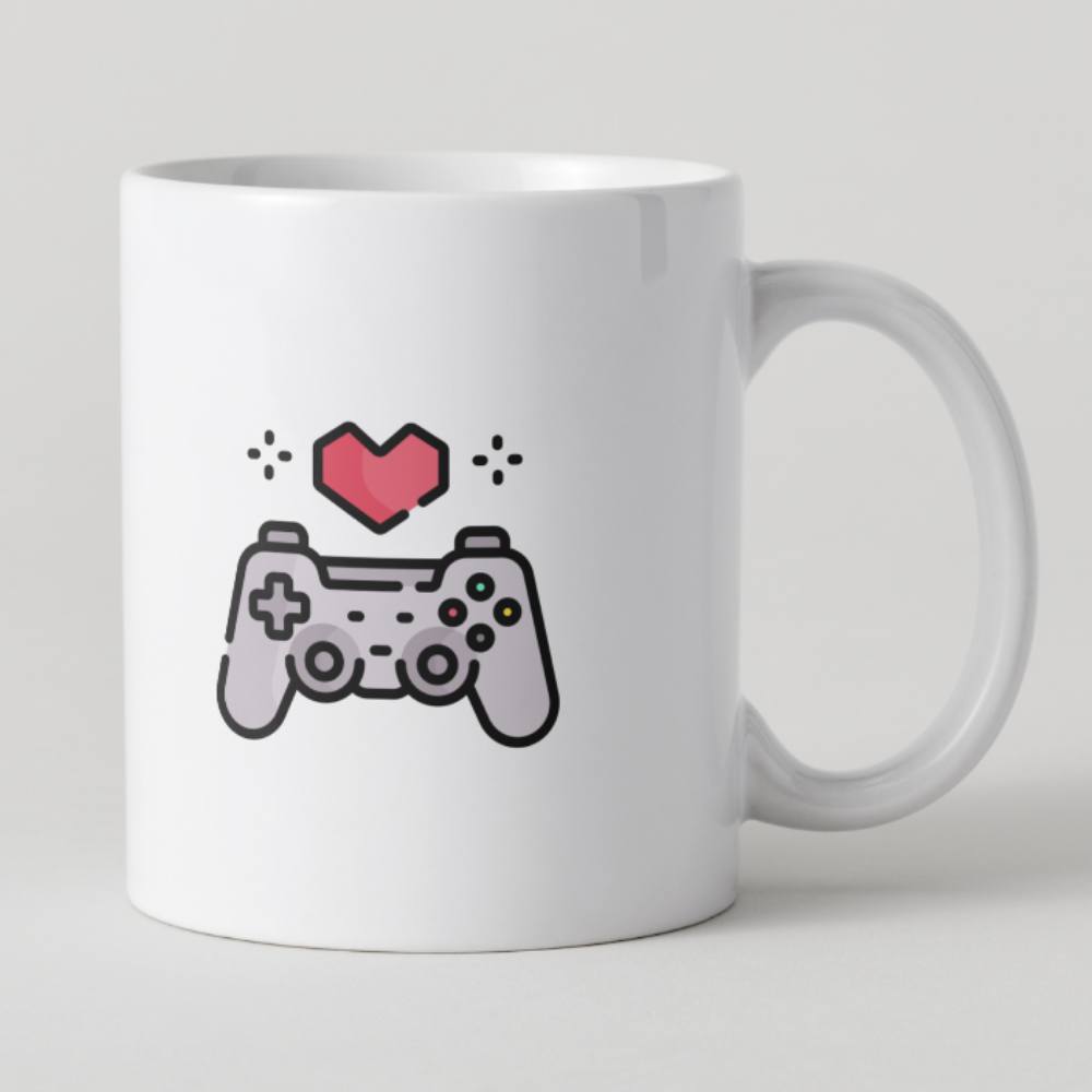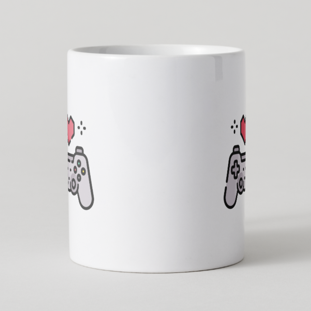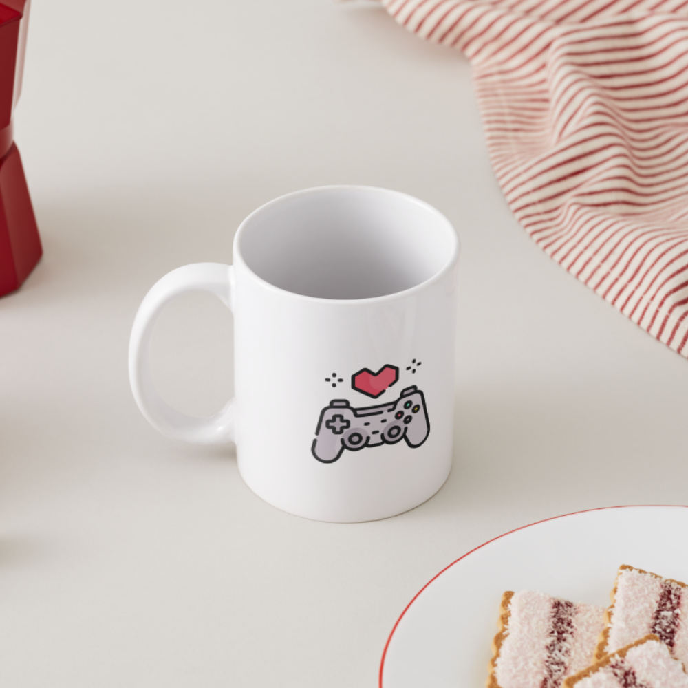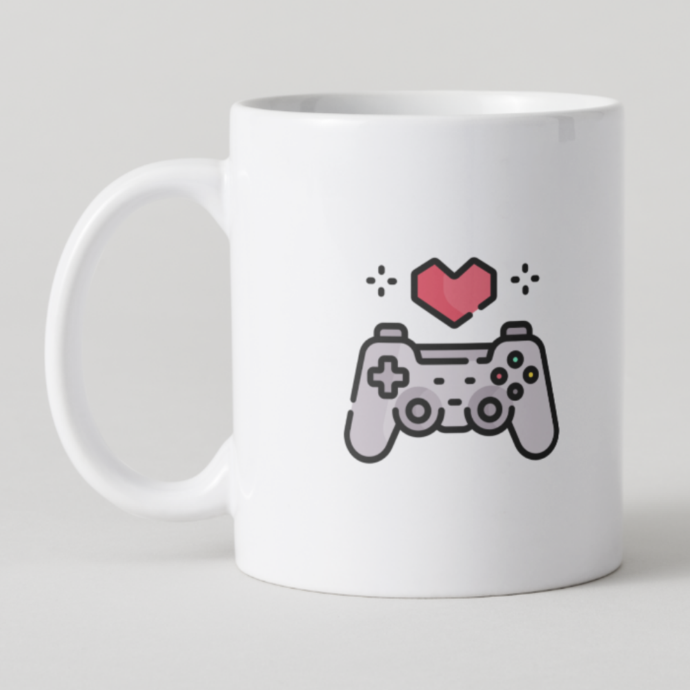 Con un diseño que mezcla un mando de consola clásico y un corazón pixelado, esta taza es ideal para gamers enamorados, parejas jugonas o simplemente para quienes no pueden empezar el día sin una buena dosis de joystick y afecto.