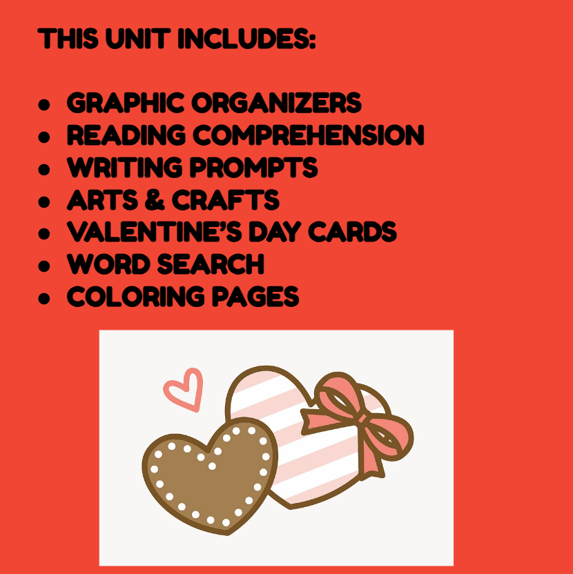 VALENTINE'S DAY UNIT WITH READING, WRITING & CRAFTS - 2ND-4TH GRADES