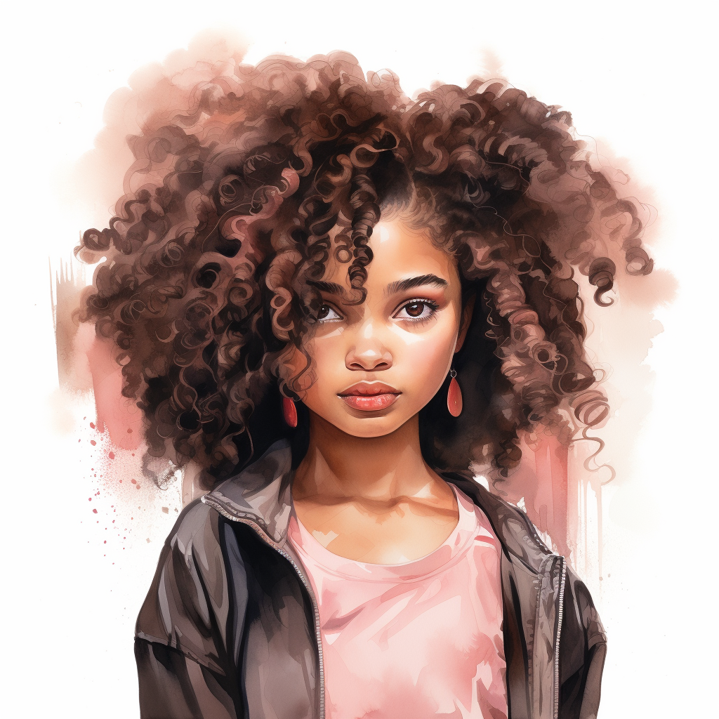 Watercolor African American Girl Dressed in Pink & Black FREE Photo, Great for Mockup, Editorial, Social Media, Blog Posts etc.