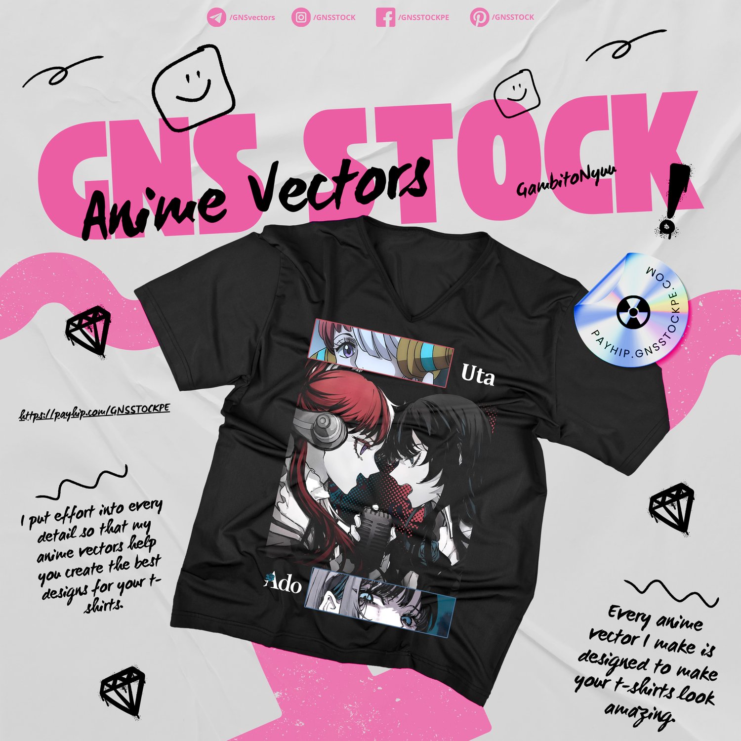 Anime Vector – Uta & Ado | One Piece Film: Red | Design for DTF, Sublimation, T-Shirts | Files: CDR, PDF, PNG, SVG