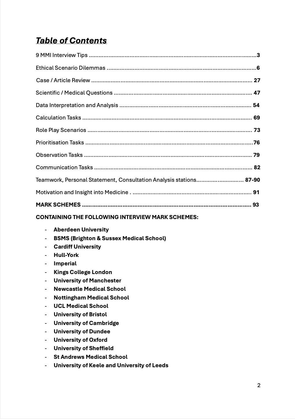 Containing INTERVIEW MARK SCHEMES from the following Medical Schools: