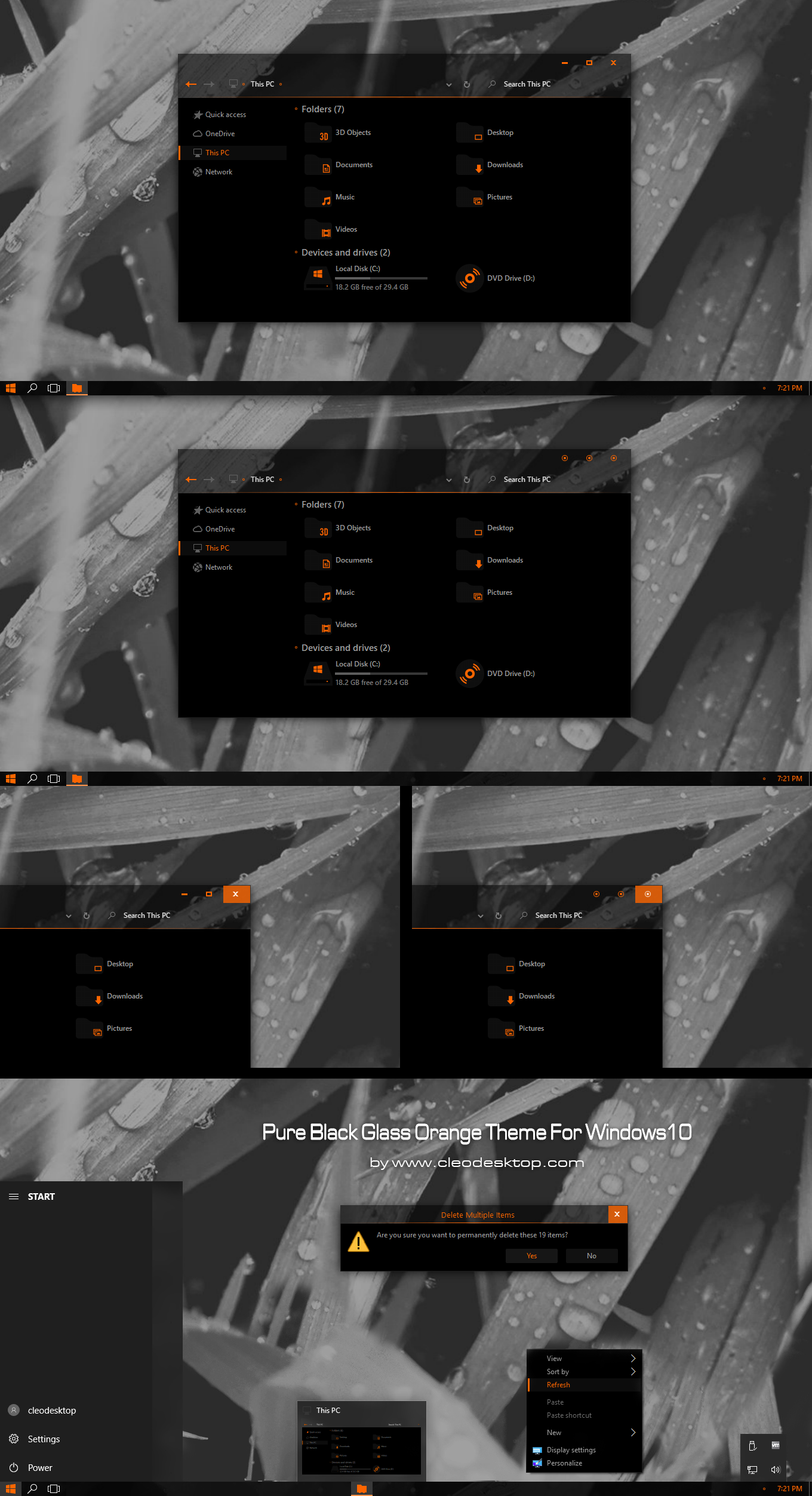 Pure Black Glass Orange Theme For Windows 10