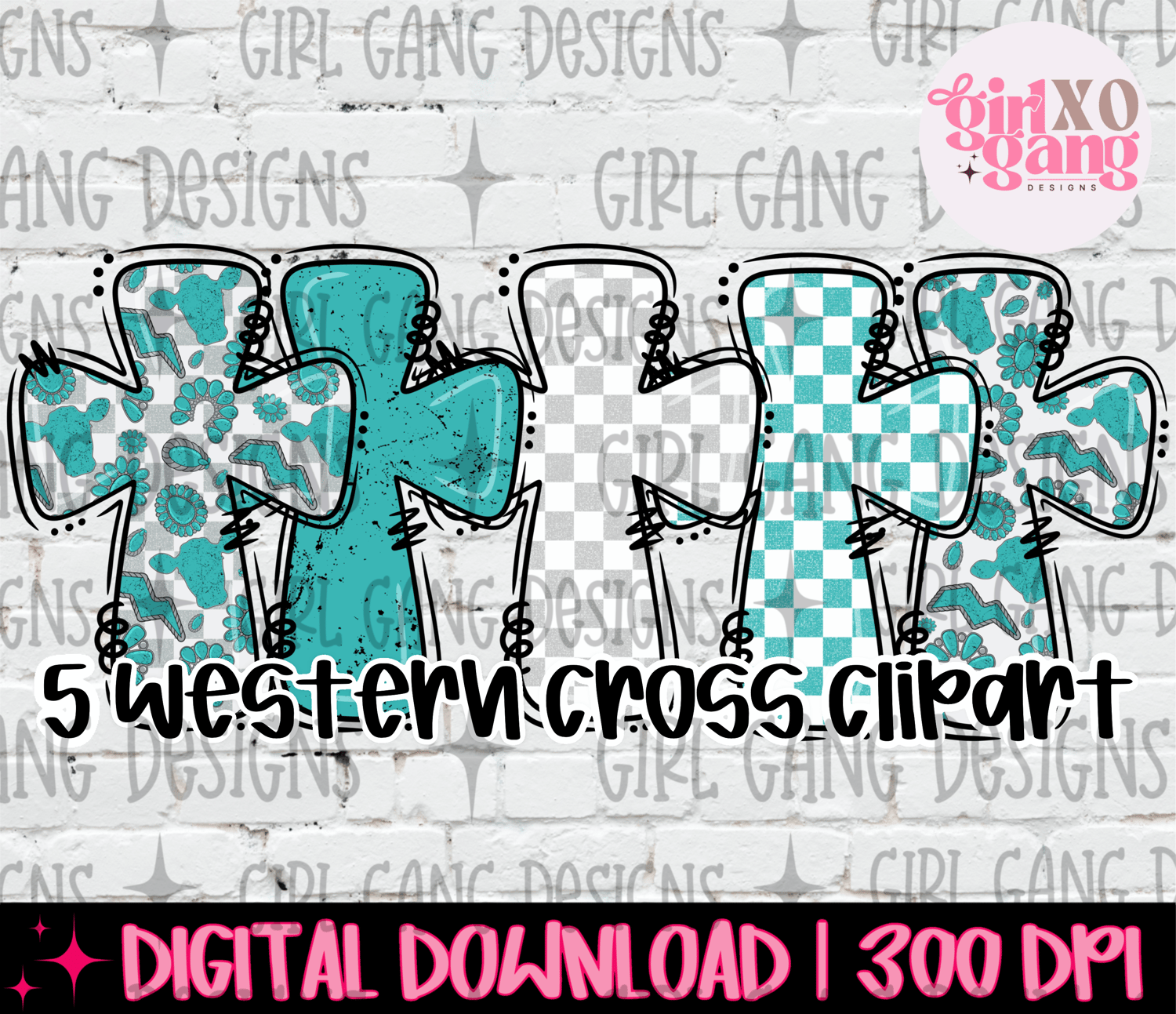 Western turquoise cross clipart bundle 5 hand drawn png files ,faith turquoise clipart png,