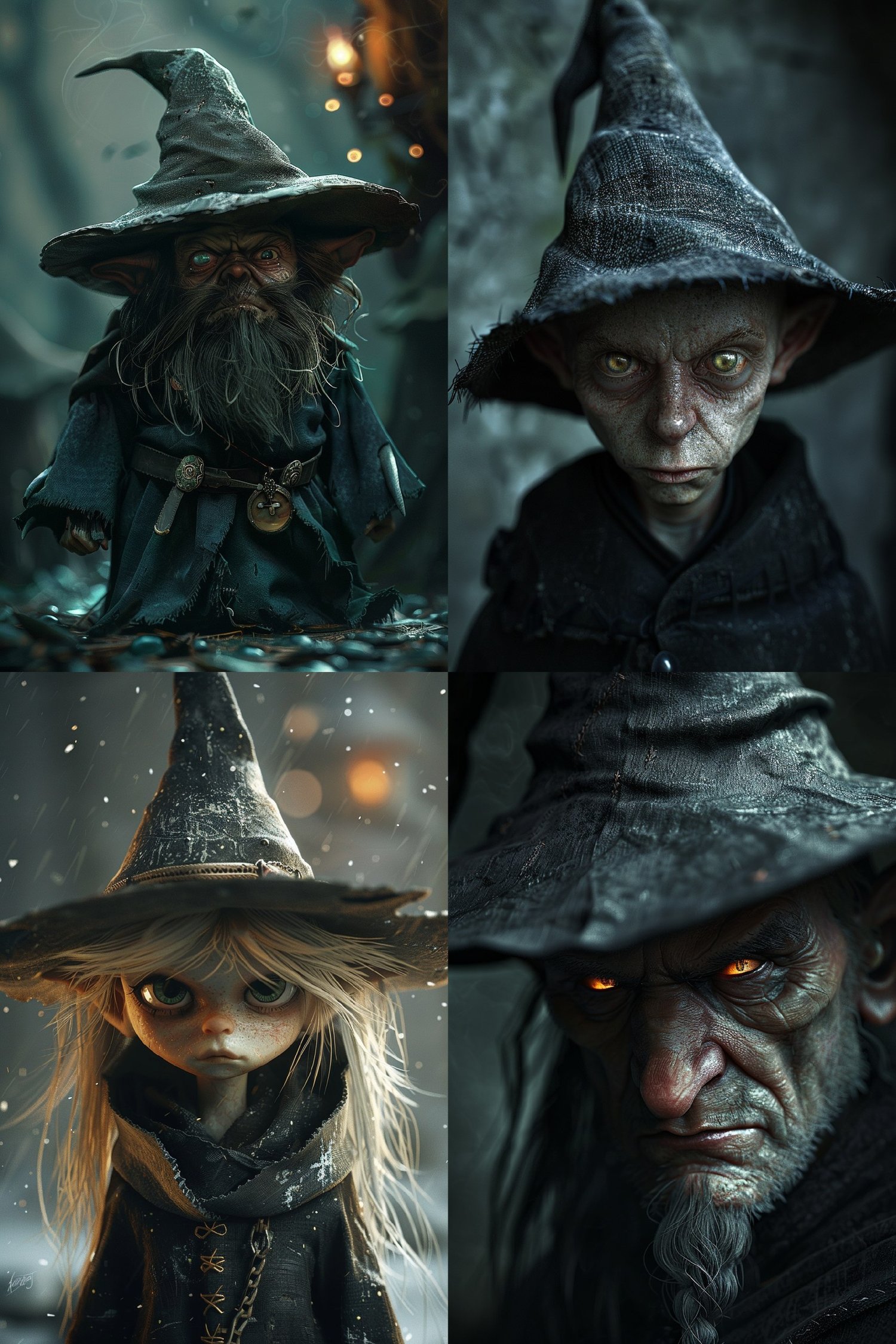 Gnome Sorcerer Dark Fantasy — Sentient Hat Cinematic Portrait Midjourney Prompt