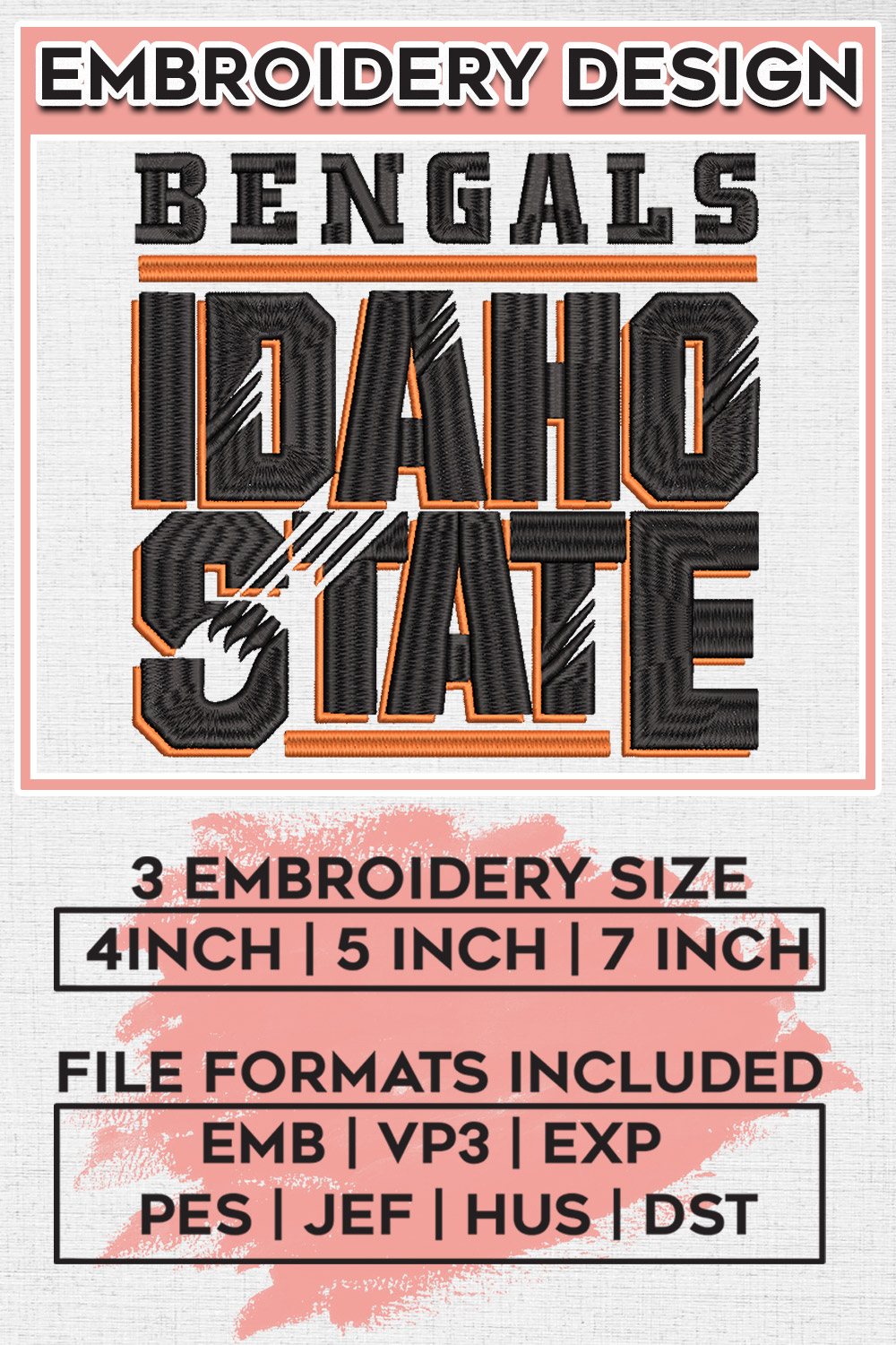 NCAA Idaho State Bengals College Football Team Wordmark Logo Embroidery Designs, NCAA Idaho State Bengals Machine Embroidery Files, NCAA Logo embroidery designs, NCAA Idaho State Logo, Digital Download