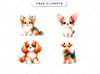 This high quality Watercolor Puppy Clipart is easy to print and Perfect for greeting cards, party decorations, mug sublimation, t-shirt sublimation, invitation cards, cupcake toppers, junk journaling, stickers, scrapbooking, stationary, gift warp, embroidery, printed fabrics, poster, banner and so much more!