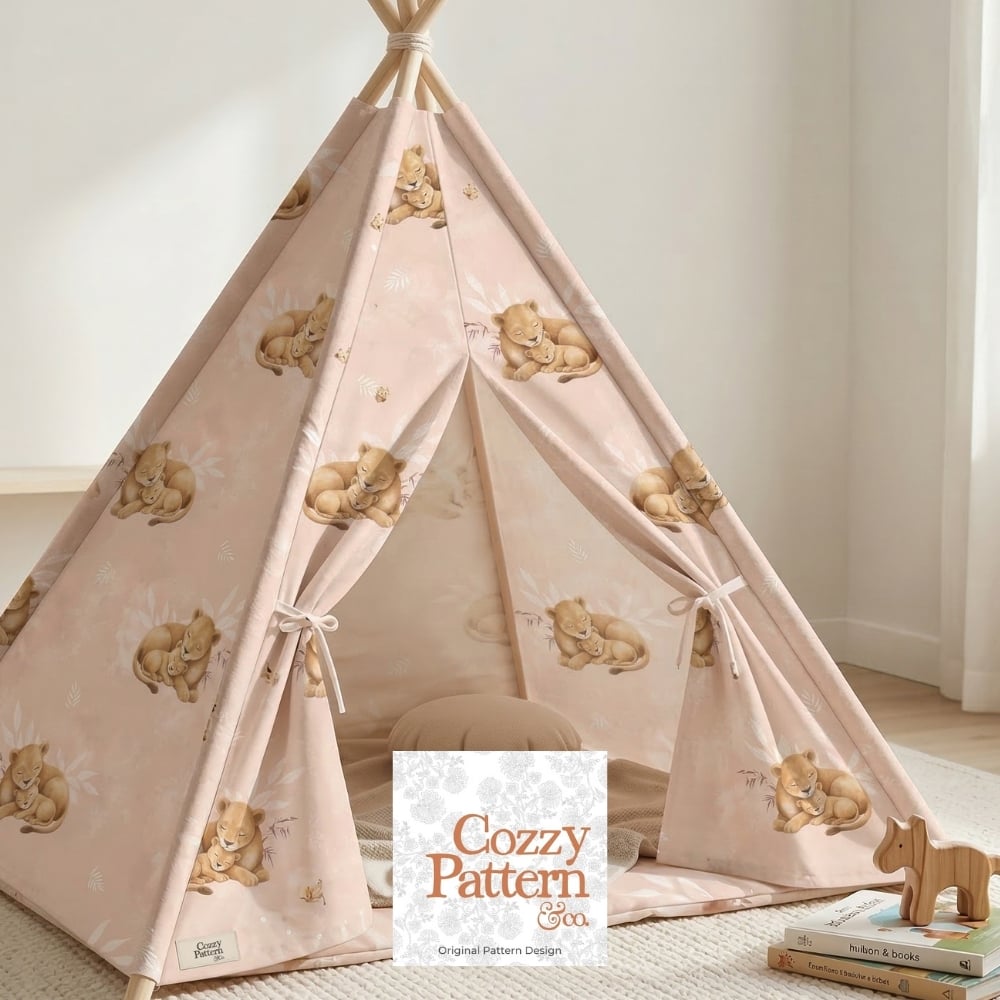 Sleeping Lion Cub Seamless Pattern P1E – Safari Baby Fabric Design | Nursery Textile Pattern | Commercial License Included