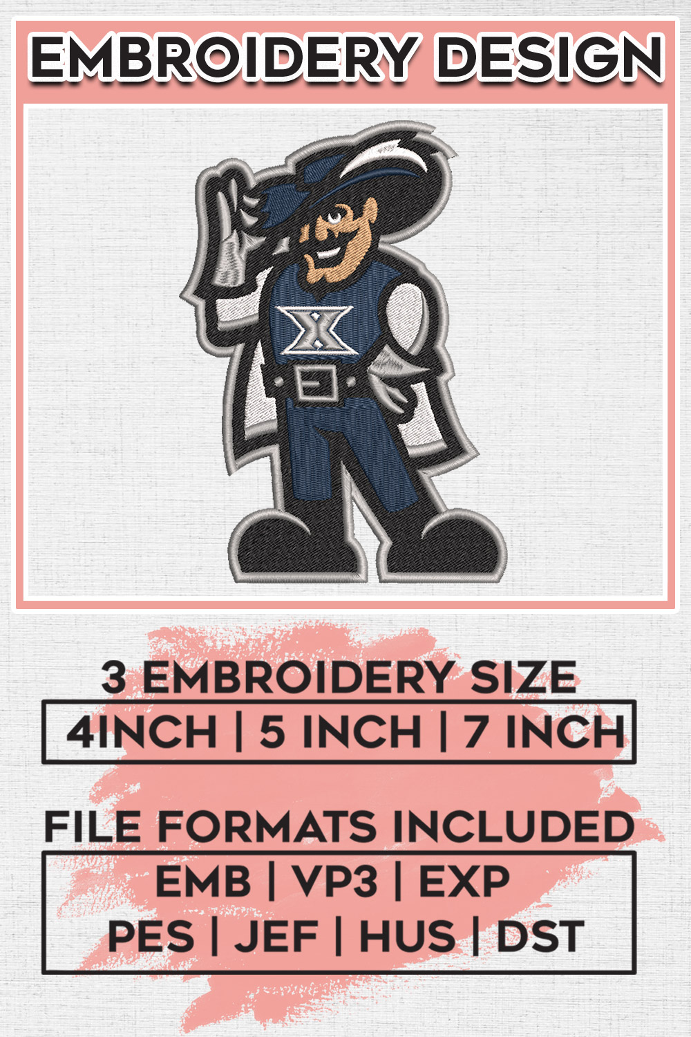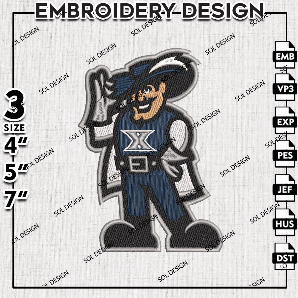 Funny Xavier Musketeers College Football Team NCAA Mascot Logo Embroidery Designs, NCAA Xavier Musketeers Machine Embroidery Files, NCAA Logo embroidery designs, NCAA Xavier Logo, Digital Download