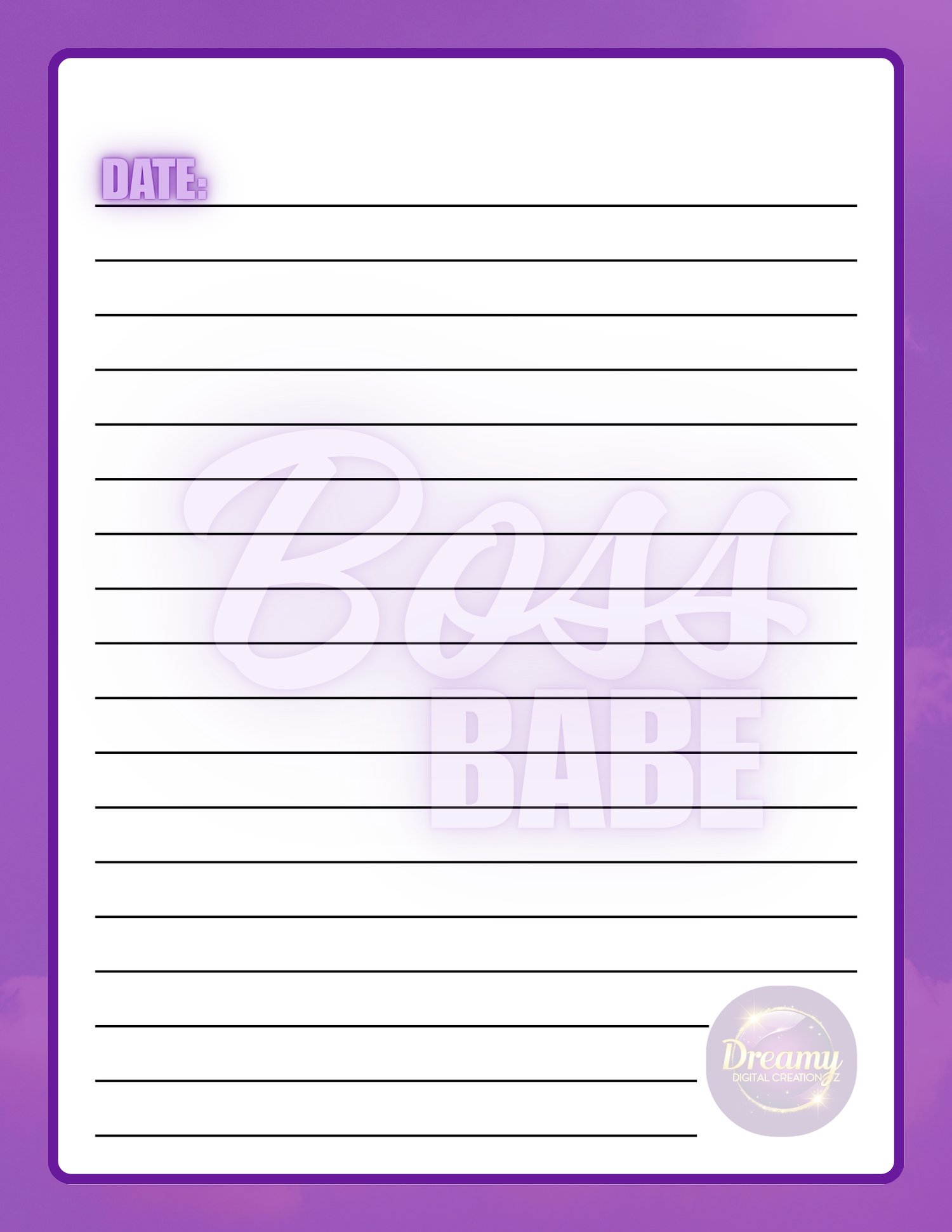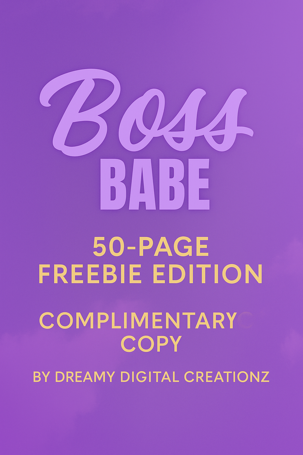 This free 50-page notebook is designed to help ambitious women like you jot down million-dollar ideas, goals, and affirmations in style. Featuring a sleek purple theme and a subtle Dreamy Digital Creationz watermark, this notebook radiates confidence and creativity.