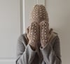 Pattern is worked in wool and mohair held together for extra warmth and gently marled effect. Hat features a twig-like pattern with crochet bobbles, which are done in mohair only.