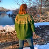 This adult sized jumper is designed to be worn with a relaxed fit. Choose a size with 5-10cm / 2-4” positive ease on the chest. All measurements provided are from the finished garment.