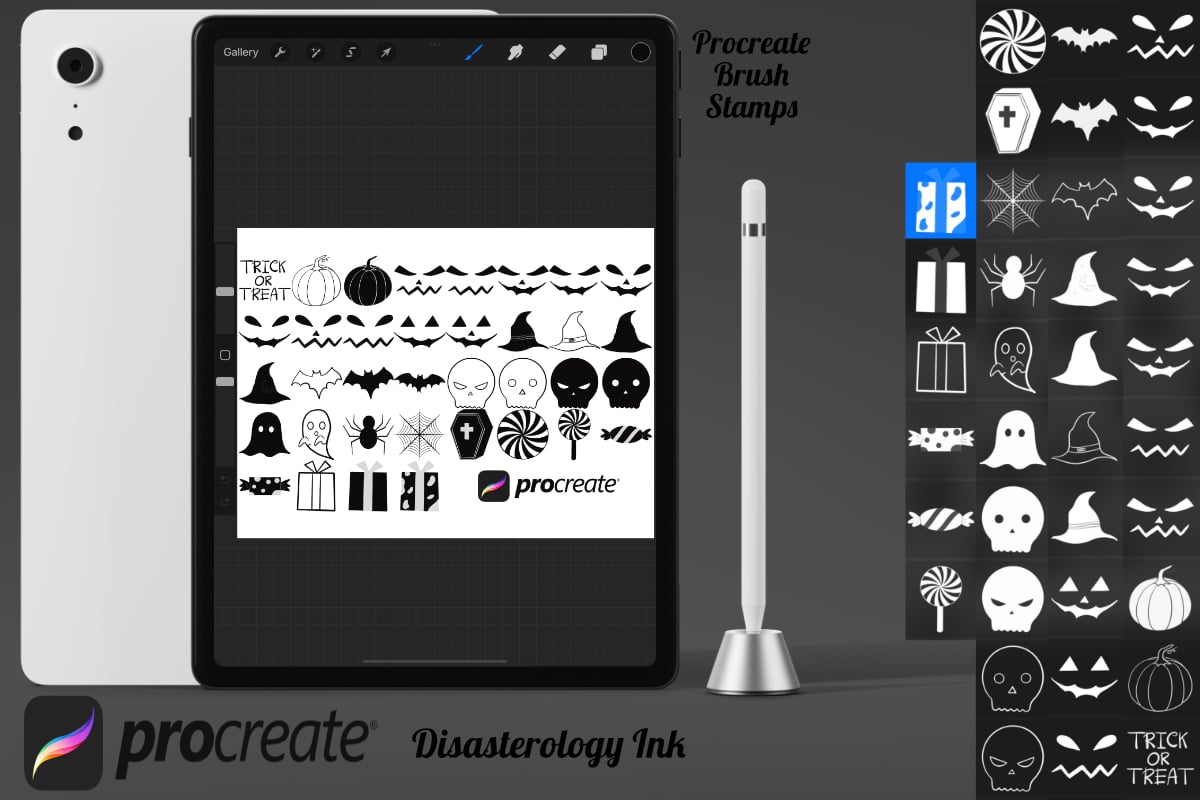 Halloween Elements Set 8 Procreate Brush Stamps, 36 Halloween Element Stamps