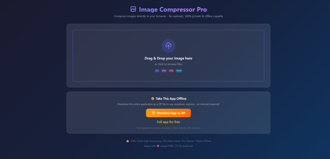 Tired of bloated images slowing down your site? Image Compressor squeezes your photos down to size without sacrificing that crisp, professional quality. Using smart algorithms, it delivers lossless compression that slashes file sizes by up to 80%—perfect for web devs, marketers, and content creators optimizing for speed and SEO. Lightning-fast, user-friendly, and free to try. Load, compress, conquer!
