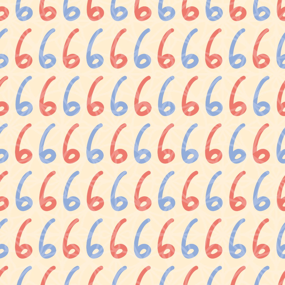 Hand written number six seamless vector pattern. Cute typographic illustration background.