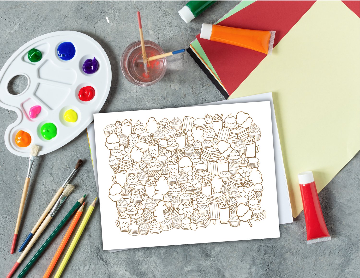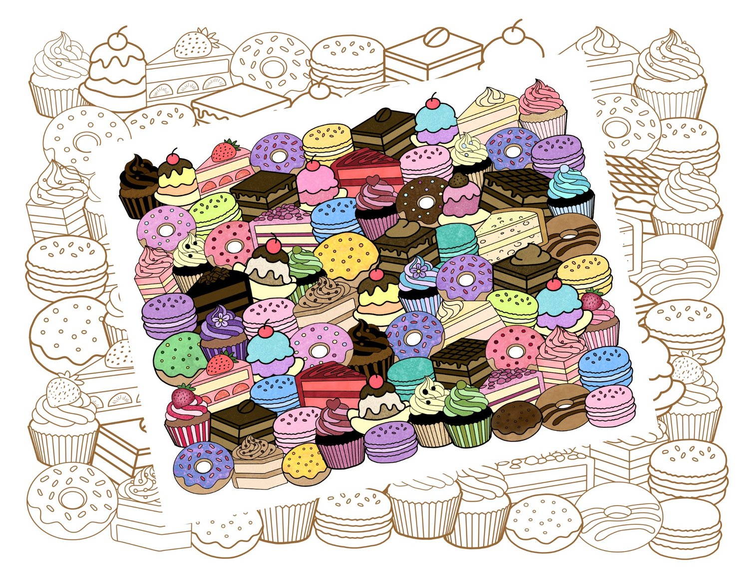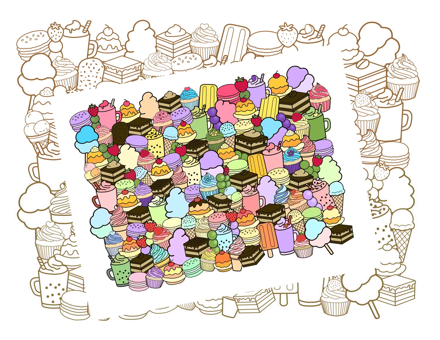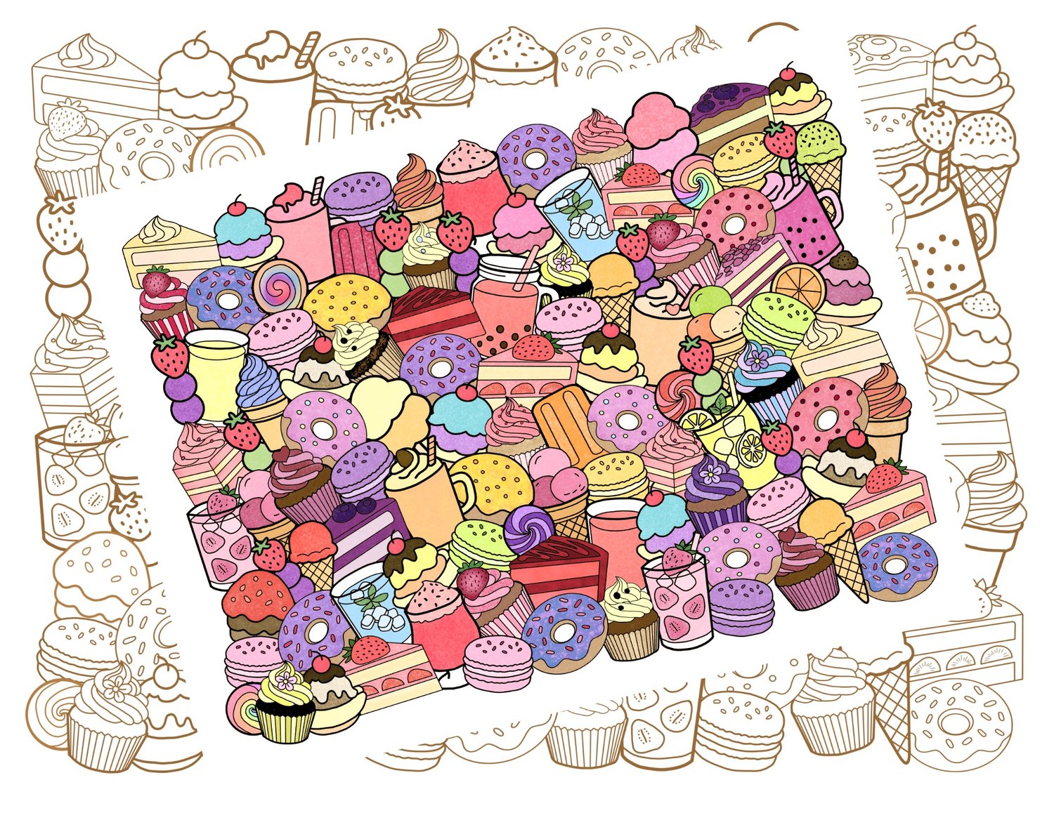 Printable Coloring Pages | Sweet Dessert Doodle Art | Hand-Drawn Dessert Doodle | Coloring Book Doodle Art | Stress Relief Coloring Pages | Stress Management | Stress Relief