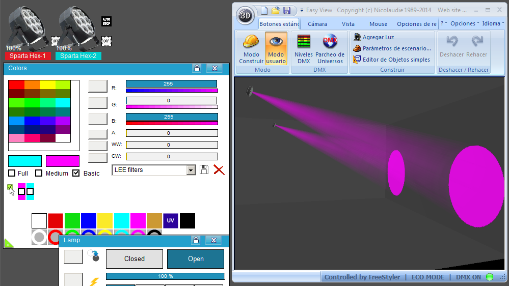Esta Librería SSL2 está optimizada para trabajar con Magic 3d Easy View. Es decir para ver una representación 3D de las secuencias que estemos realizando con Freestyler, QLC+ o cualquier otro soft que se conecte con Magic 3d.