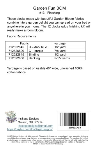 These blocks made with beautiful Garden Bloom fabrics combine into a garden delight you can spread on your bed or anywhere in your home. The 12 blocks (plus finishing kit) will really make a room bloom.