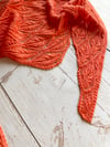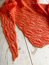 The grey version is knit with 1 strand of alpaca 4ply and 1 strand of laceweight mohair held together; the same gauge was achieved with a single strand of merino 4ply as shown in the orange version.
