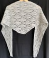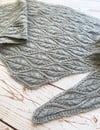 Elysium is a cable and lace shawl knit sideways from end to end. This shawl can be knit to any length, increasing length will also increase depth.