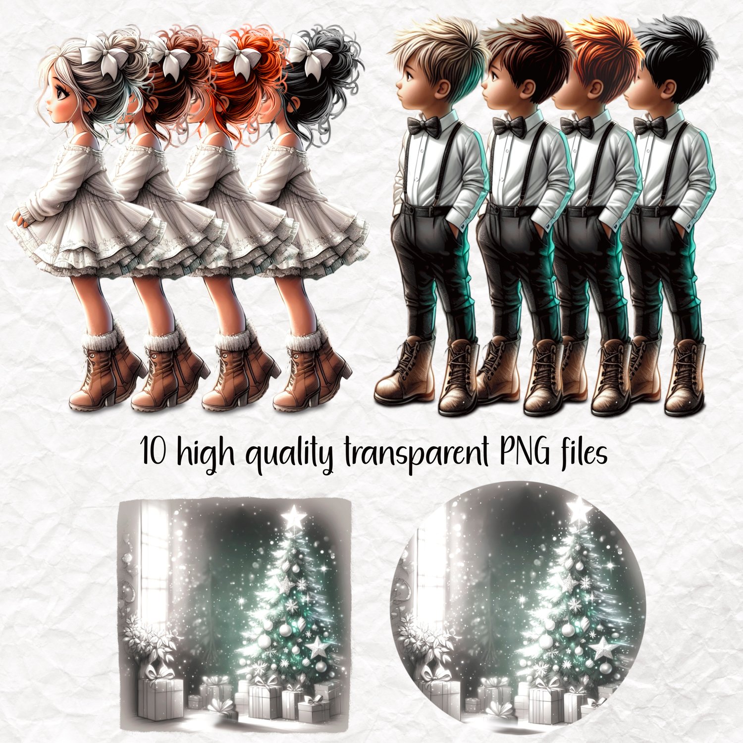 Beautiful Christmas girl & boy gazing out of the window. 10 PNGs. 2 backgrounds; square and round, 4 girls 4 boys; Blonde, brunette, black, brunette hair. Sublimation, DTF, UVDTF etc. Instant download