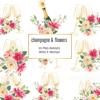 10 Champagne and Flowers Clipart PNG Glasses Junk Journaling Card Making Commercial Use Digital Instant Download