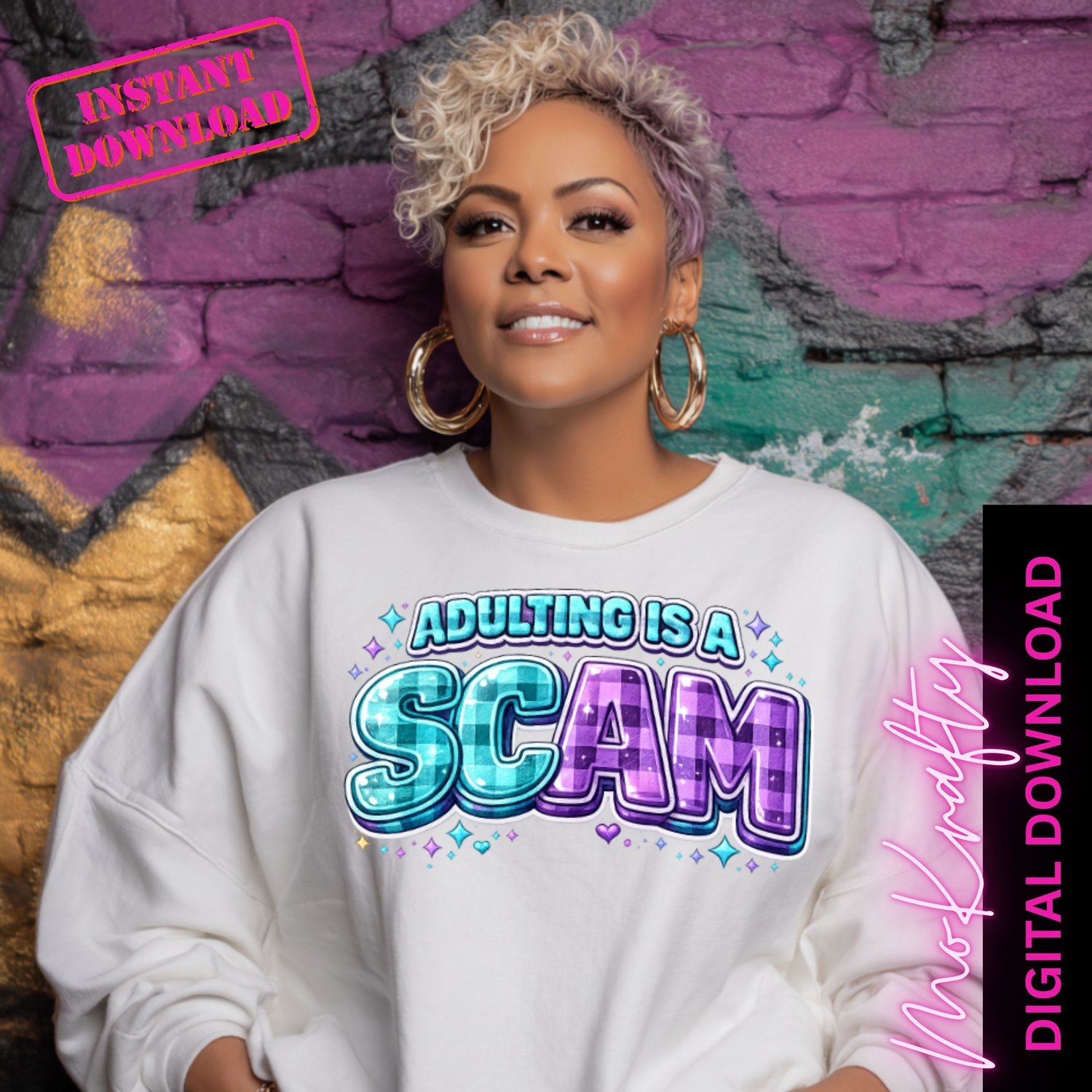 Add humor and personality to your creations with this “Adulting Is a Scam” PNG design! This bold, colorful typography graphic is perfect for trendy apparel, gifts, and print-on-demand products