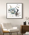 Capture a moment of pure freedom and joy in your home with this digital reproduction of my original oil painting. Two birds take flight in a graceful dance, symbolizing hope, liberation, and the beauty of life.