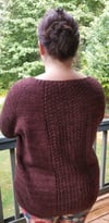 Foolish is an oversized, top down raglan sweater with a sweet lace panel down the back. Worked in buttery soft DK weight yarn from Loved Ones Yarn, it is sure to become your favorite lounge attire. There are options in the pattern for full length or cropped, traditional or split hem, and long or short sleeved!