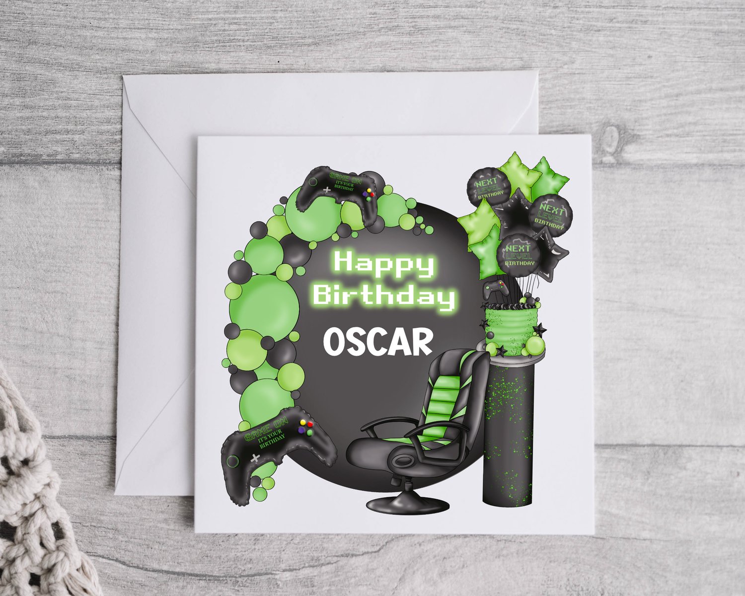 Birthday Gamer (Green) Birthday Card - Can be personalised