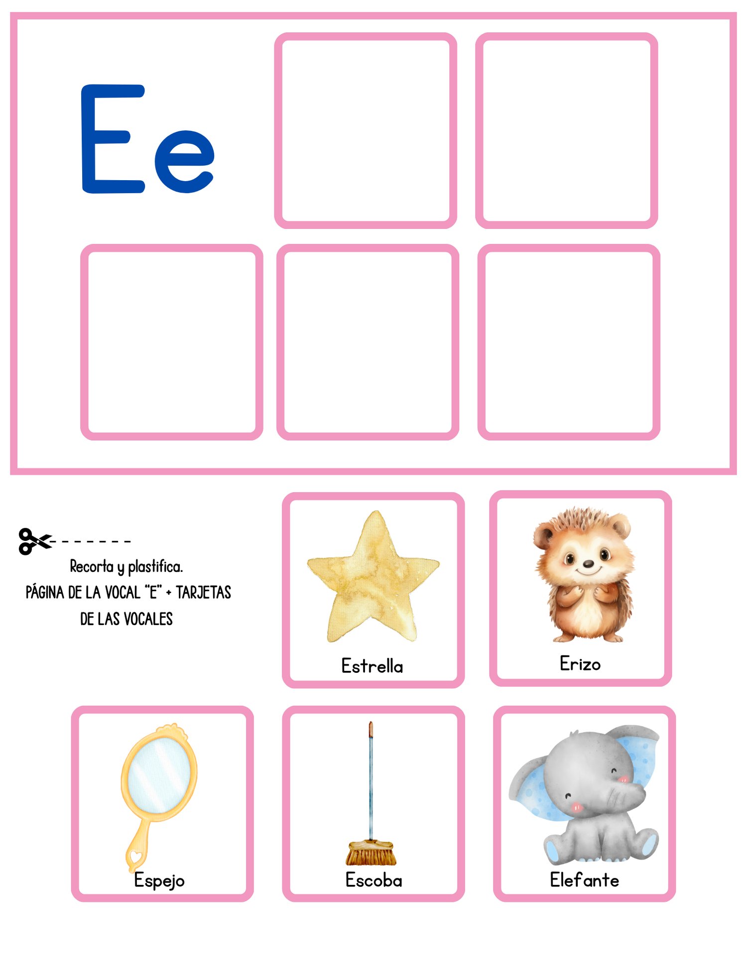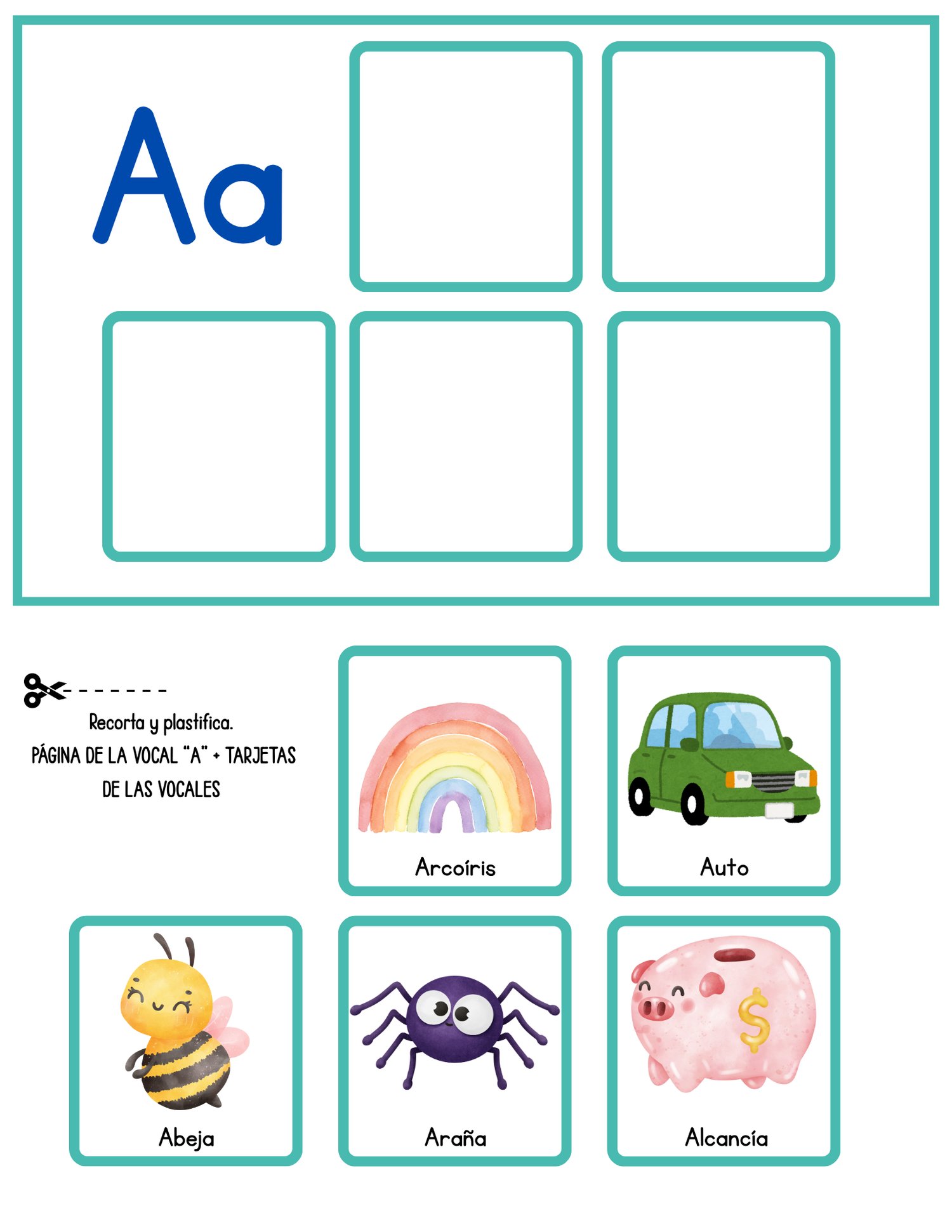 - 5 láminas principales (una por cada vocal: A, E, I, O, U).