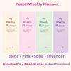Pastel Weekly Planner Printable | Minimal Aesthetic Planner | A4 & US Letter | Instant Download