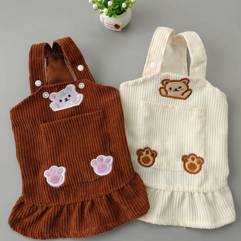 Pet Spring and Autumn Bears Embroidery Corduroy Strap Dress Cat Dog Clothes Teddy Korean Bibear Pomeranian VIP