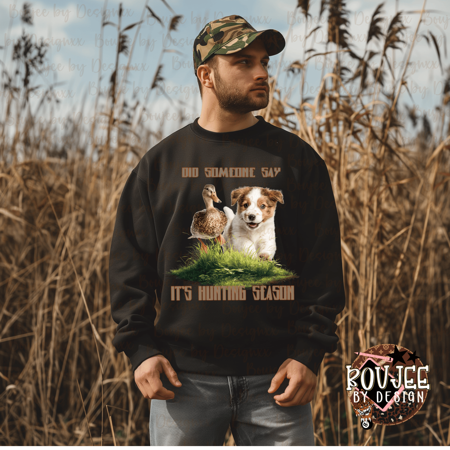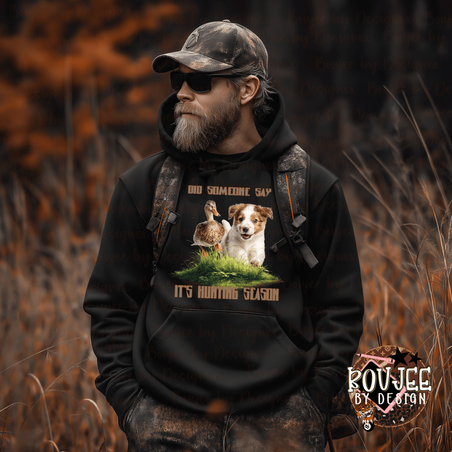 Did Someone Say It’s Hunting Season | Hunting Dog & Duck PNG | Funny Hunting Sublimation Design | Outdoor Hunting Shirt Design