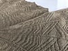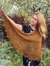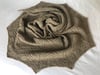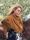 Minimum gauge is specified, this will achieve a more defined look to the pattern. For a more flowing shawl (see main sample), a looser gauge can be used. It is recommended that swatches are completed before starting to determine the desired look. If working at a very loose gauge please bear in mind that definition may be lost and additional yarn required.