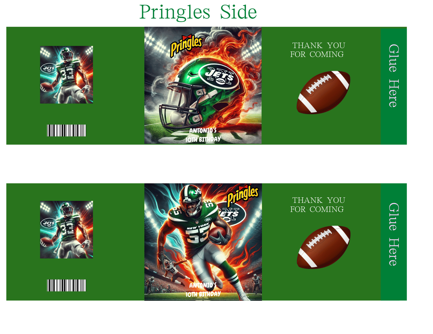 Take your NY Jets party to the next level with our customizable party favors! Perfect for die-hard fans, these editable designs let you add your personal touch to make game day unforgettable. Get yours now and score a touchdown with your guests!" 🏈🎉