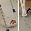 The door of the casting room opens. A young boy. Crutches in his hands. His foot in a split plaster SLC. Remains of plaster on his toes.