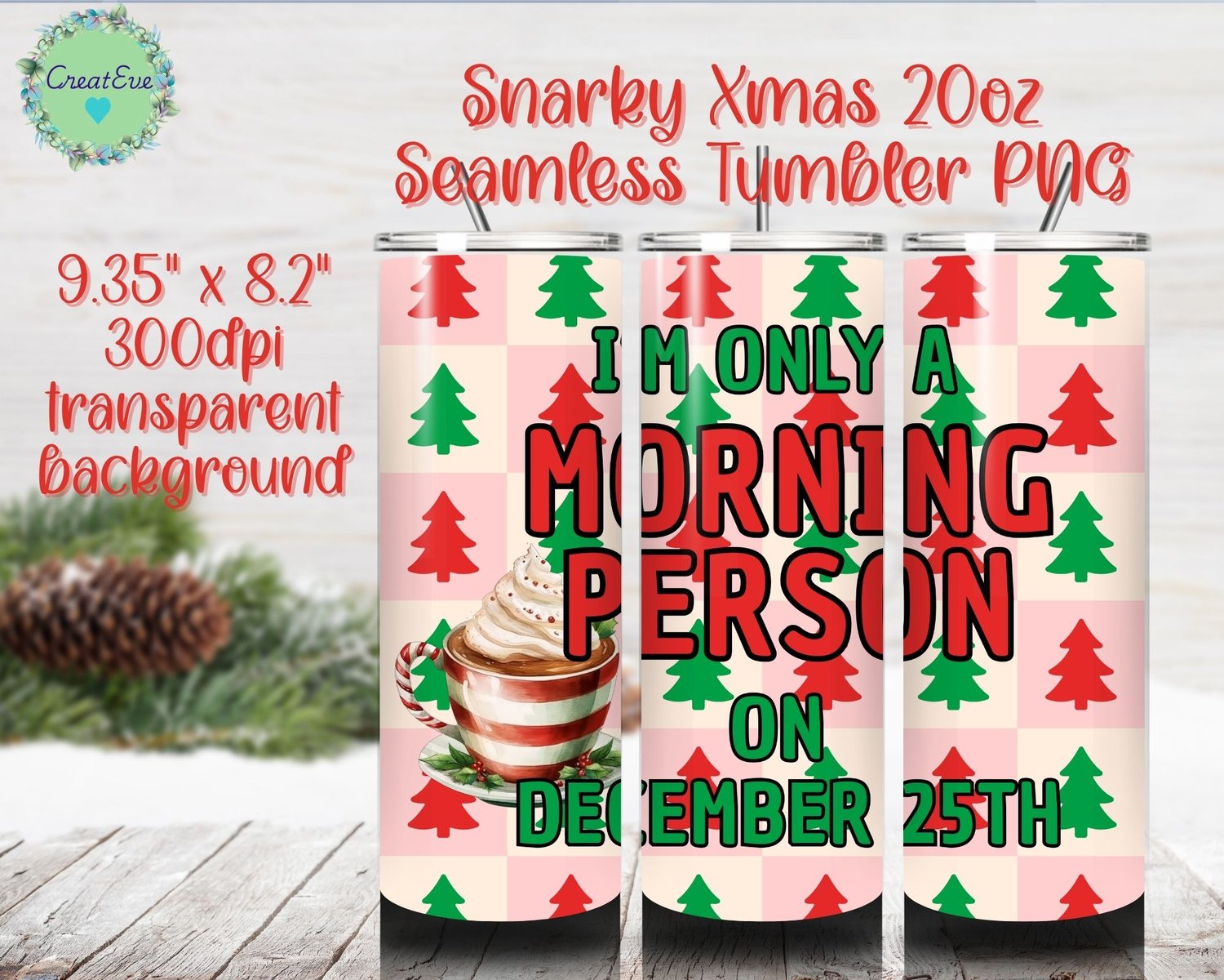 Snarky Christmas Morning 20oz Seamless Skinny Tumbler PNG, 300 dpi, 9.35" x 8.2"