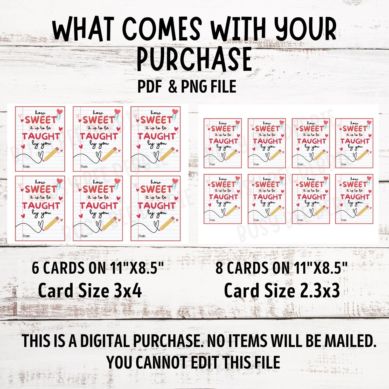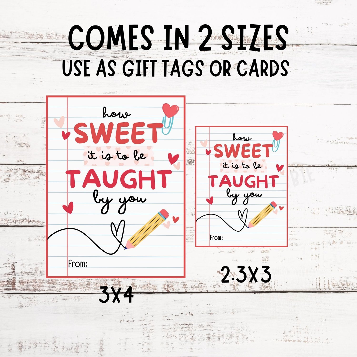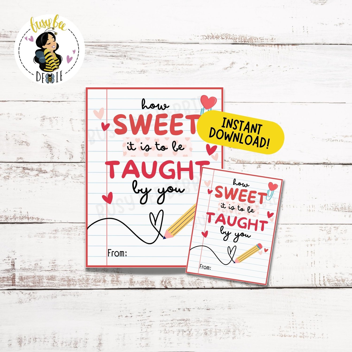 Show your appreciation this Valentine's Day or for Teacher's Week with these "How sweet it is to be taught by you" cards. Use the download as a card or punch a hole and make it a gift tag!