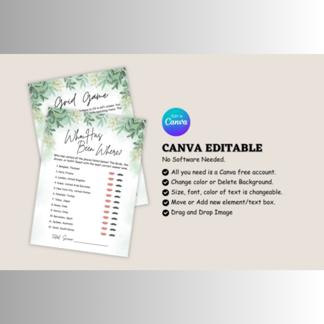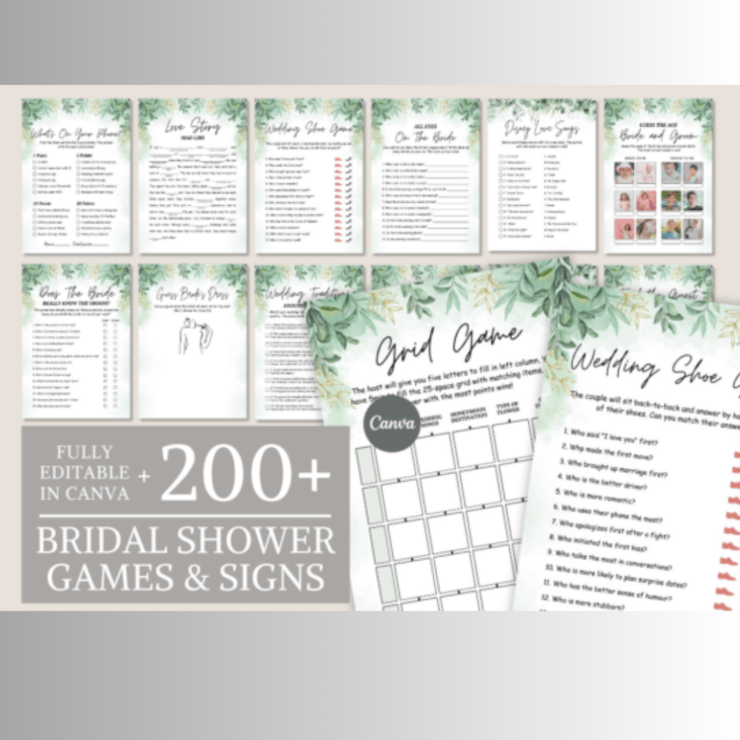 Includes all the most popular bridal shower games—perfect for modern, rustic, botanical, or outdoor-themed showers.