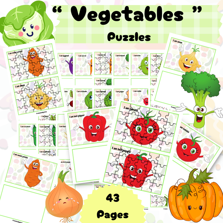 Looking for a fun and engaging way to teach kids about vegetables, nutrition, and healthy eating? This printable Vegetables Puzzle Pack is the perfect mix of play and learning — featuring 43 adorable, veggie-themed puzzles that build vocabulary, motor skills, and a love of healthy food.